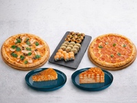 сыр моцарелла, шампиньоны, помидоры, курица филе запеченное, кинза