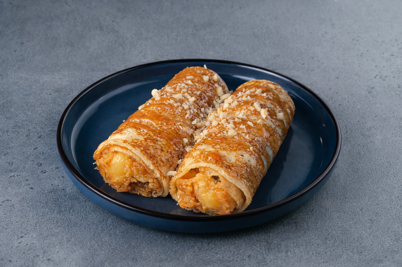 Десертный острый блин с орехом, бананом и чили-карамелью