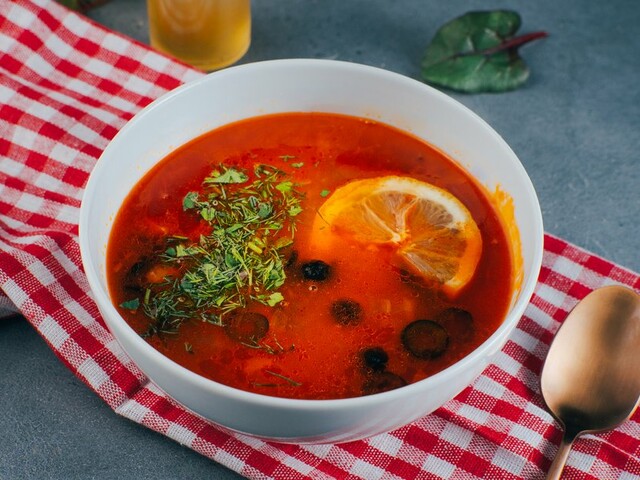 Картофель, капуста белокочанная, морковь, свекла, говядина, хлеб бородинский, сало, сметана, зелень.